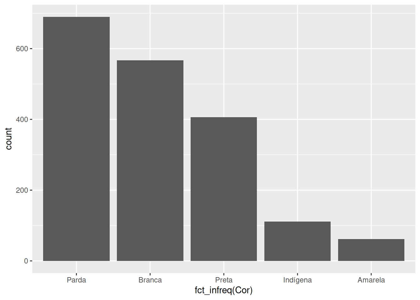 Agora, com o uso de fct_infreq() podemos reposicionar essas barras em um sentido mais lógico, como está demonstrado abaixo: